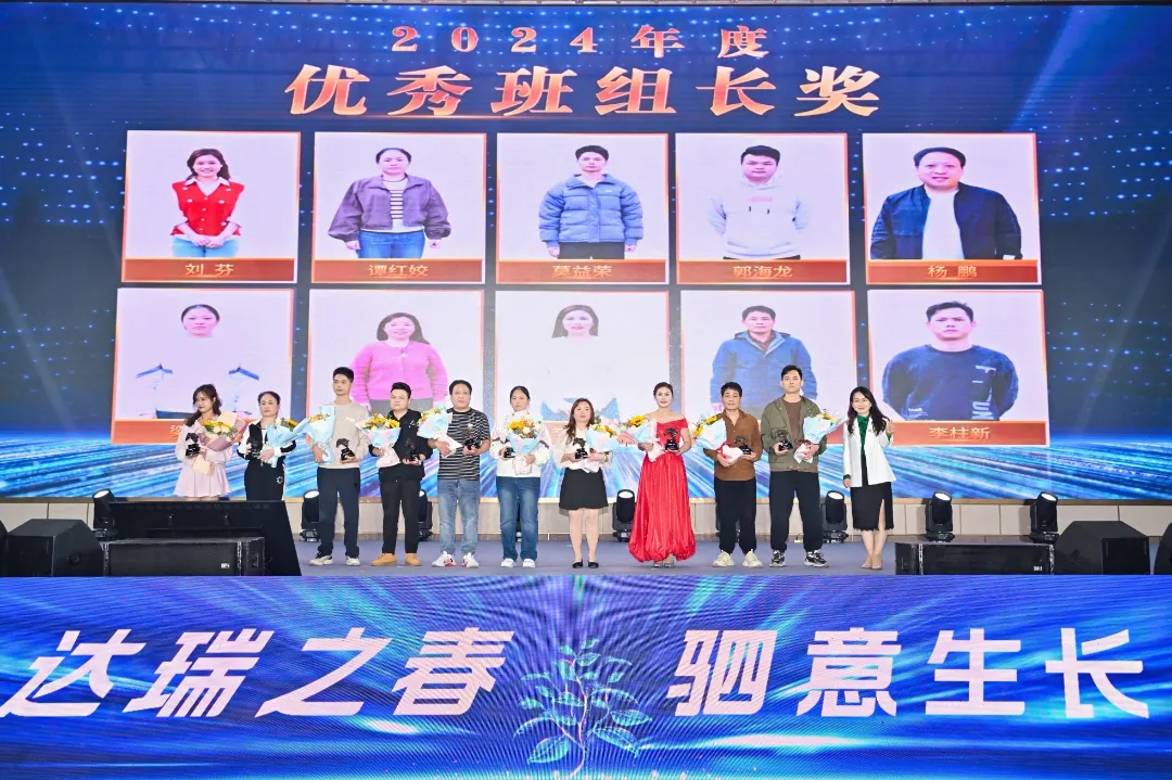表彰环节首先以《星光闪耀时》优秀员工记录视频拉开序幕。随后在热烈的掌声和欢呼声中,最佳新锐奖、优秀员工奖、最佳开拓者奖、优秀班组长奖等多个奖项逐一颁发。获奖员工依次接过奖杯和鲜花,这一刻,他们成为了全场的焦点,他们的努力和成绩得到了最充分的认可和肯定。